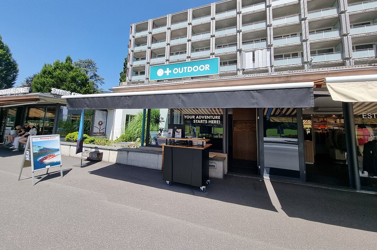 我们强烈建议您乘坐公共交通工具抵达(见上文说明)。如果您更倾向于驾车抵达,我们建议您使用以下停车场:Parkhaus Zentrum Interlaken(地址 Jungfraustraße 53, 3800 Interlaken)。停车费为每小时2瑞士法郎起;停车场24小时开放使用;车身高度上限为2.3米。 停好车后,沿着Höhe-Promenade路走,沿着右手边为 Höhematte草坪的方向向前走。到了与Höheweg街的交叉口向右转,沿着步行街向前走,看到Kirchhofer Casino Gallery珠宝手表店后,继续向前,就到了因特拉肯户外运动店(Outdoor Interlaken Shop)。